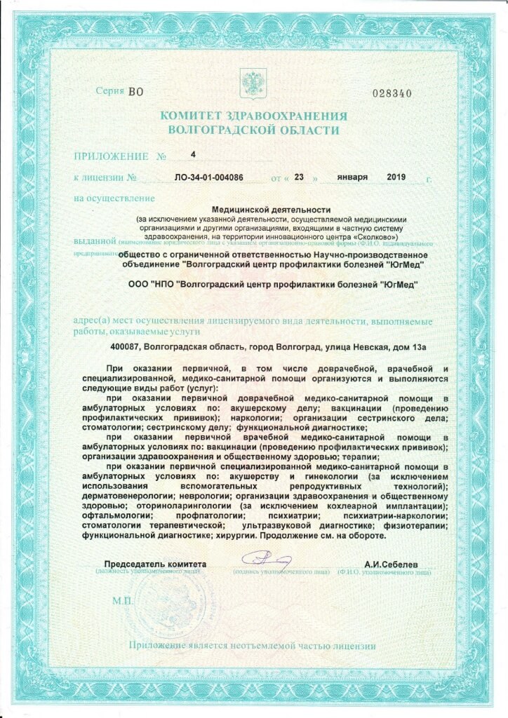 Медицинская компания «ЮгМед» в Волгограде начала свою работу в 2003 году, как клиника, предоставляющая услуги ультразвуковой диагностики. Сегодня «ЮгМед» - это медицинский центр, ведущий прием взрослого населения, а также отделение медицинских осмотров, детская поликлиника, психо-наркологический центр и клинико-диагностическая лаборатория. В 2012 году открылось отделение медицинских осмотров. Мы проводим широкий спектр профилактических медицинских осмотров для организаций и физических лиц, включая психо-наркологическую экспертизу: первичные и периодические медосмотры на предприятиях, оформление медицинских книжек, различные виды справок. Амбулаторно-поликлиническая помощь в многопрофильной клинике «ЮгМед» представлена лечебно-консультативным приемом врачей более чем по 20 направлениям медицины, а также широким спектром диагностических услуг. В нашем центре Вы можете пройти УЗИ, ЭКГ, СМАД, электроэнцефалографию, ФГДС, ректоскопию, фиброколоноскопию и многое другое. В клинике выдаются больничные листы. Компания успешно сотрудничает со страховыми компаниями, гарантирующими оказание медицинской помощи по полисам добровольного медицинского страхования (ДМС).